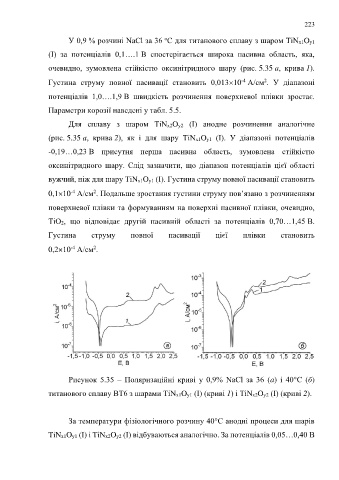вужчий, ніж для шару TiNx1Oy1 (I). Густина струму повної пасивації становить