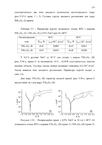 Для шару TiNx2Oy2 (IІ) характер анодної кривої (рис. 5.36 a, крива 2)