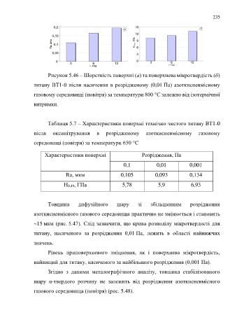 Таблиця 5.7 – Характеристики поверхні технічно чистого титану ВТ1-0