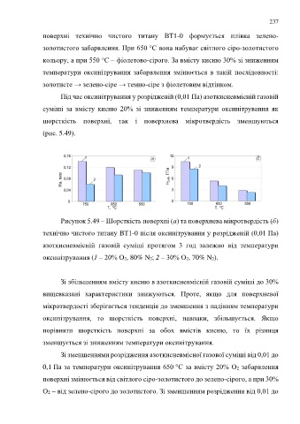 Рисунок 5.49 – Шорсткість поверхні (а) та поверхнева мікротвердість (б)