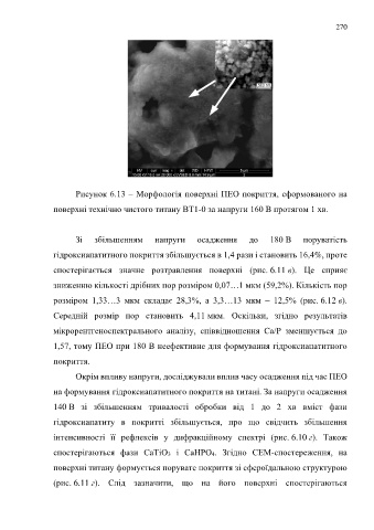Рисунок 6.13 – Морфологія поверхні ПЕО покриття, сформованого на