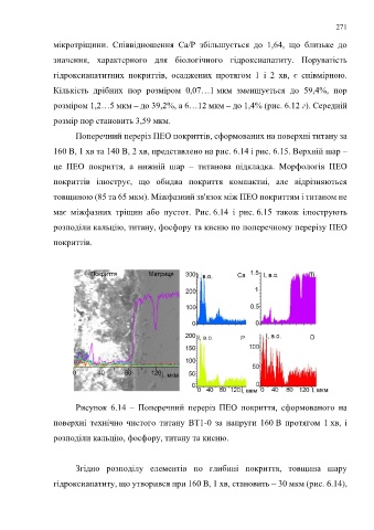 гідроксиапатиту, що утворився при 160 В, 1 хв, становить ~ 30 мкм (рис. 6.14),