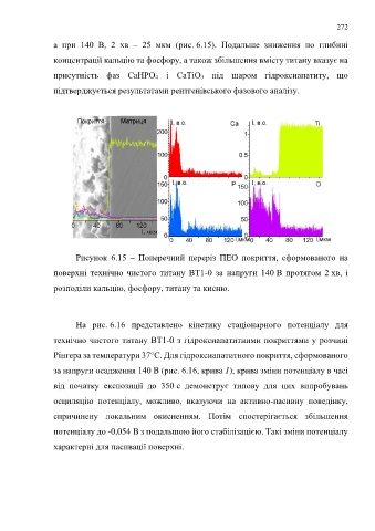 присутність фаз CaHPO4 і CaTiO3 під шаром гідроксиапатиту, що