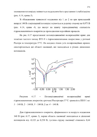 На рис. 6.17 представлені потенціодинамічні поляризаційні криві для