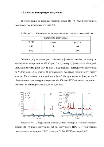 титану після азотування за 850°С (рис. 7.6 a, спектр 1) формується нітридний