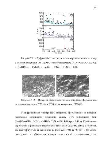 Ca10(PO4)6(OH)2, CaTiO3, CaHPO4, Ti2N, -Ti і TiО2 (рис. 7.11 в). Комбіноване