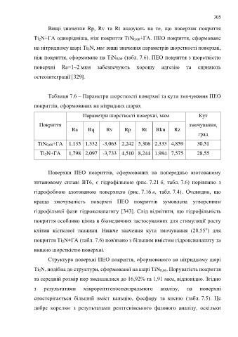 ніж покриття, сформоване на TiN0,66 (табл. 7.6). ПЕО покриття з шорсткістю