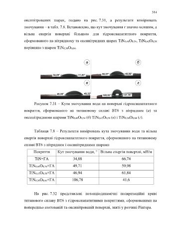 змочування – в табл. 7.8. Встановлено, що кут змочування є значно меншим, а