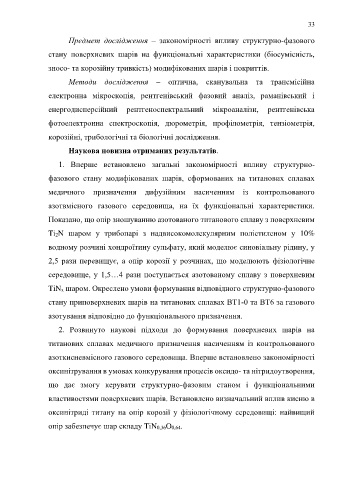 стану поверхневих шарів на функціональні характеристики (біосумісність,