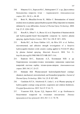 215. Heimann R.B. Plasma-sprayed hydroxylapatite-based coatings: