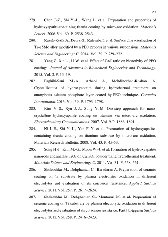 281. Yang Z., Xia L., Li W. et al. Effect of Ca/P ratio on bioactivity of PEO