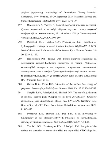 297. Проскурняк Р., Ткачук О. Кальцій-фосфатні покриття на титані.
