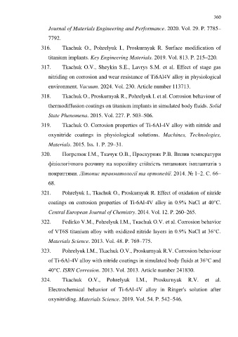 319. Tkachuk O. Corrosion properties of Ti-6Al-4V alloy with nitride and