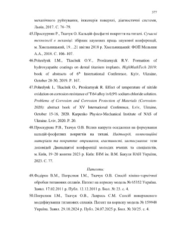 45. Проскурняк Р., Ткачук О. Кальцій-фосфатні покриття на титані. Сучасні