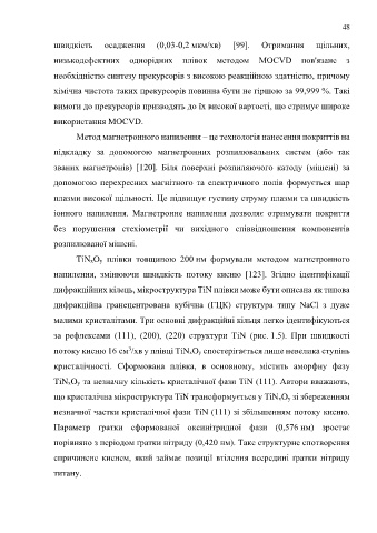 за рефлексами (111), (200), (220) структури TiN (рис. 1.5). При швидкості
