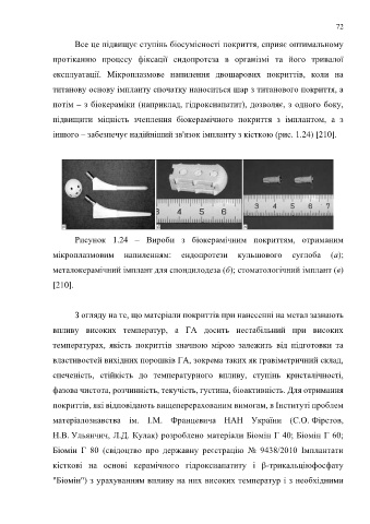 Рисунок 1.24 – Вироби з біокерамічним покриттям, отриманим